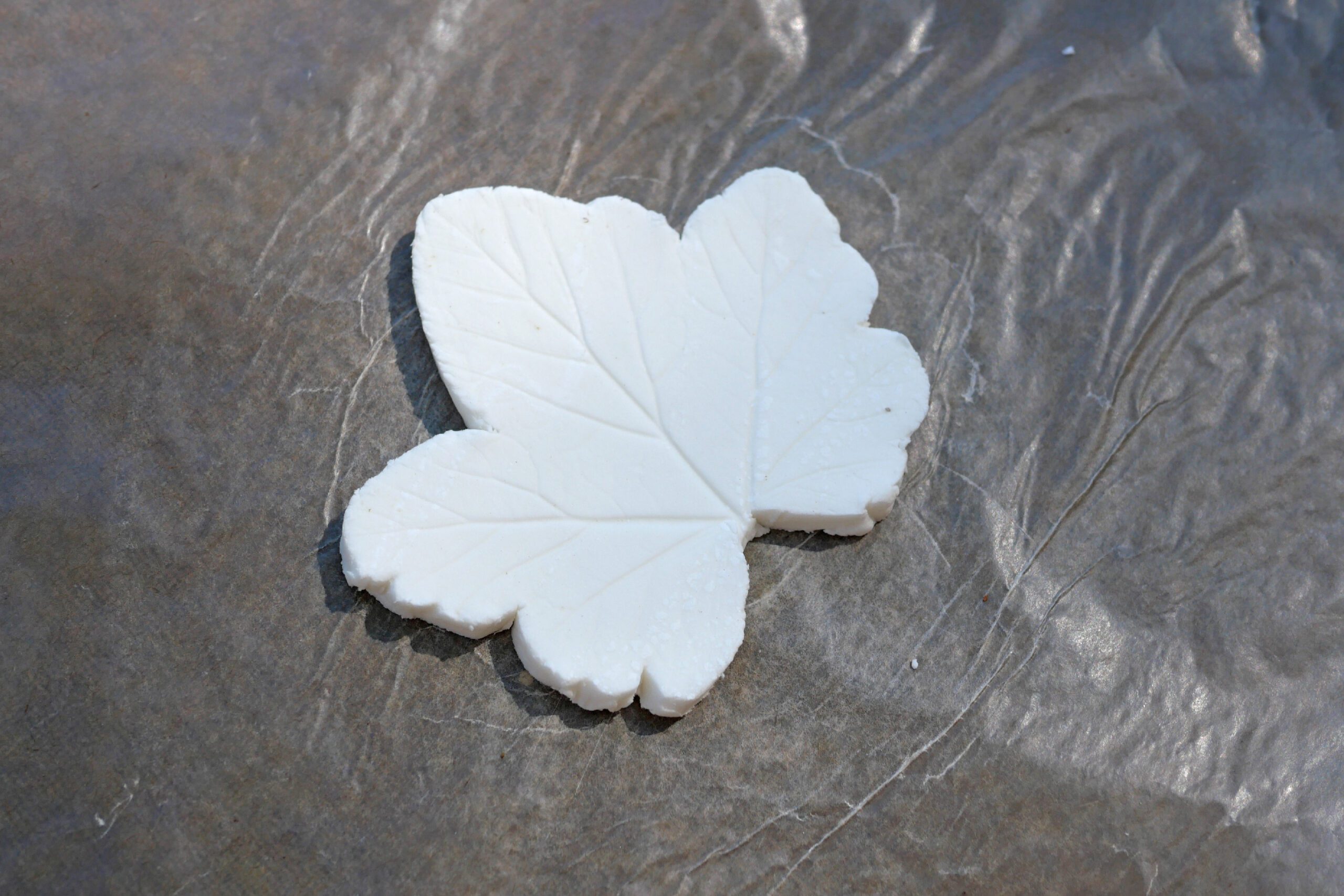 Gently peel the leaf away from the clay and remove any excess clay around it.