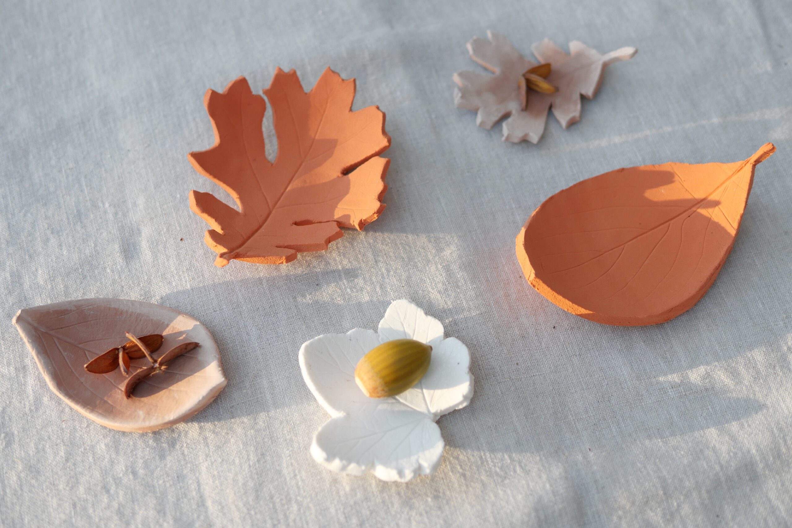 One thing we were looking forward to was making these leaf bowls from clay. They capture the beauty of nature’s form. The finished bowls are perfect for holding small items like jewelry or coins, or as candle holders.