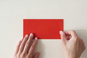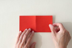 Step 1とStep 2でつけた折り筋に沿って、四角く折り畳みます。