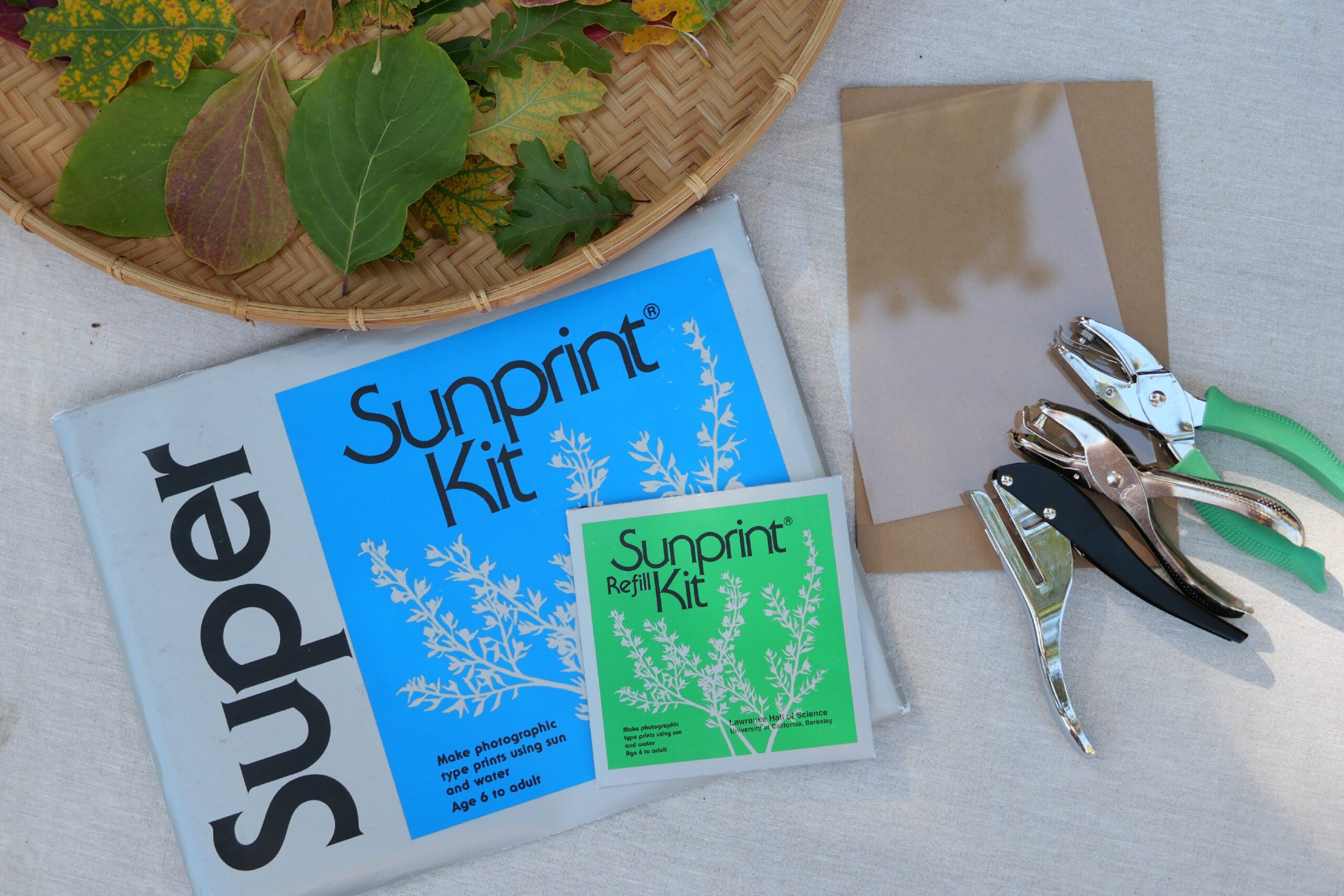 The principle behind sunprinting is the same as photographic printing. When special paper with an object placed on it is exposed to sunlight, a chemical reaction occurs, transferring the exact shape of the object onto the paper. Various kits are available for purchase, making it easy to get started.